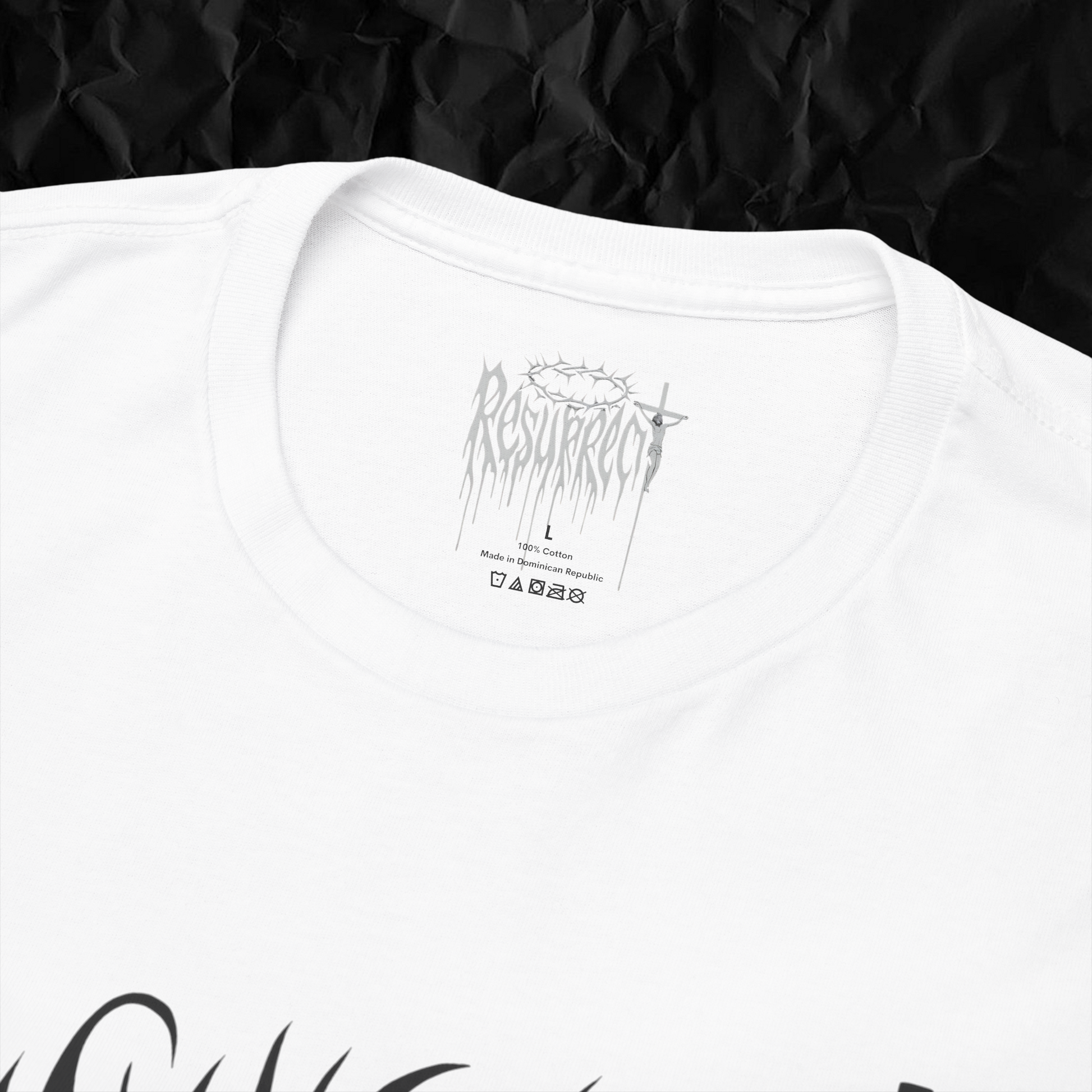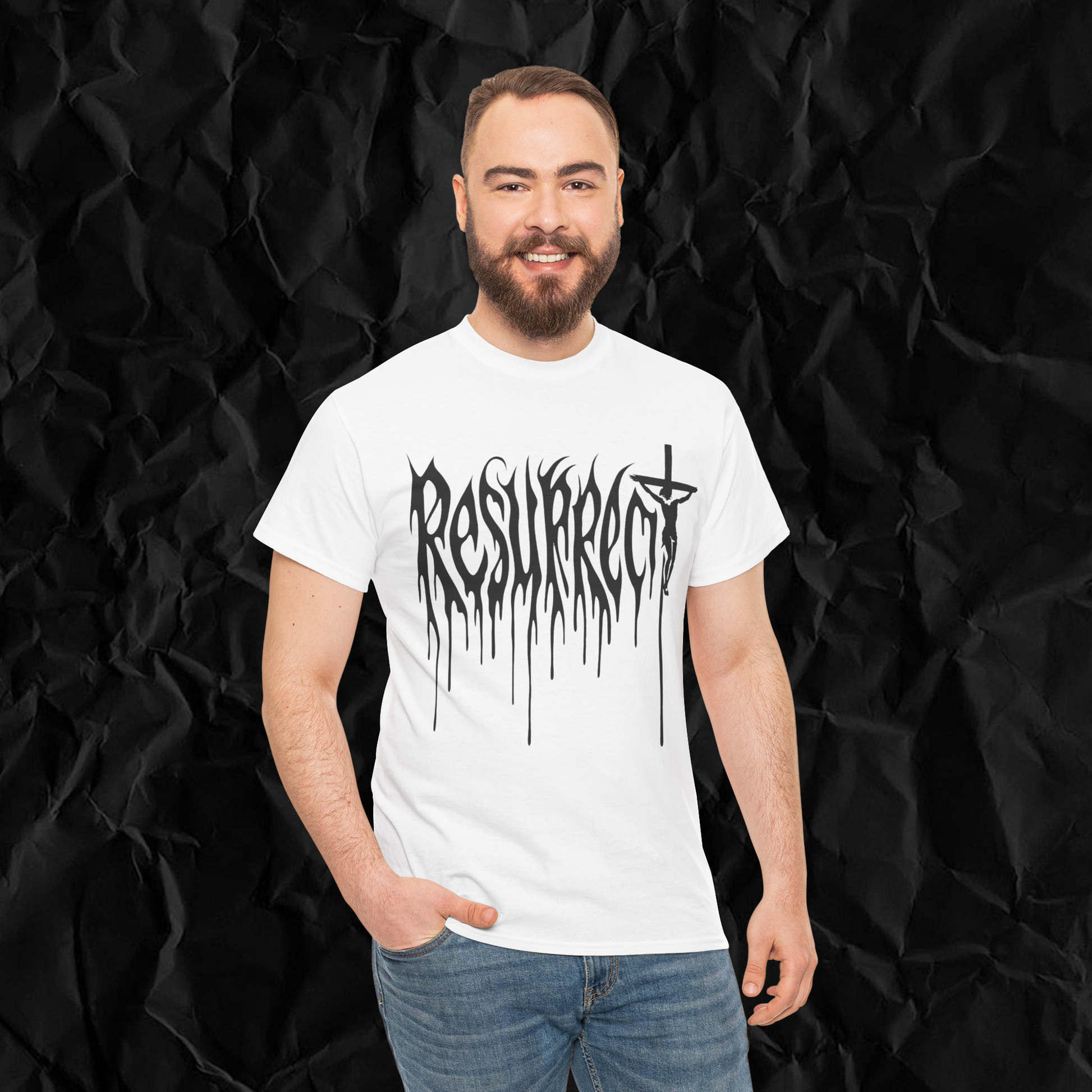 Make a statement. The RESURRECT™ drip logo meets a stark crucifix for a clean, monochrome graphic—equal parts Christian streetwear, gothic, and grunge.